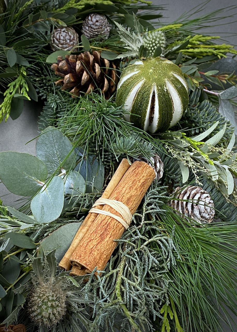 Get into the Christmas spirit by creating your very own traditional luxurious Christmas wreath with an abundance of natural embellishments.