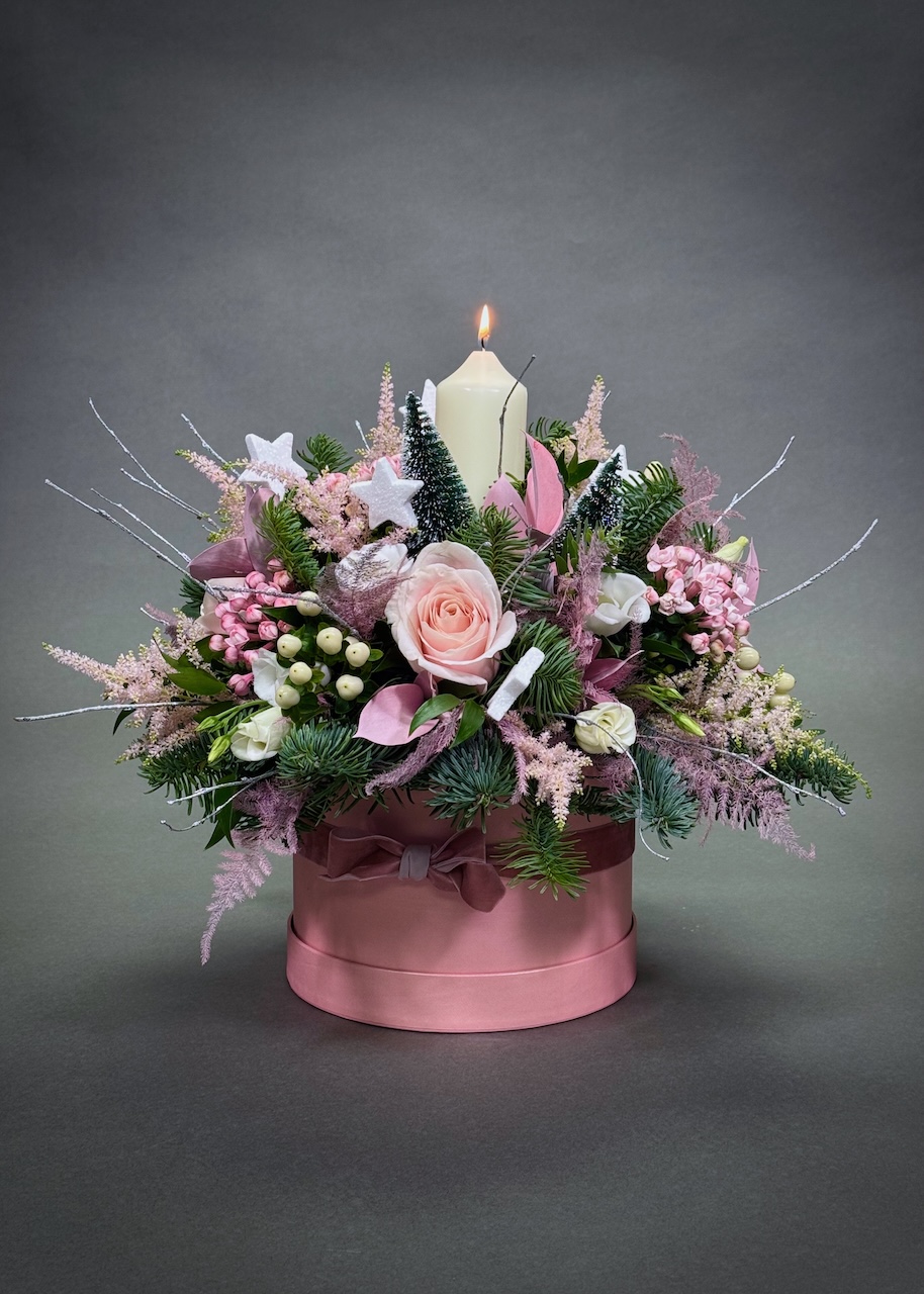 Sprinkle some fairy dust this Christmas with our magical hat box with an abundance of flowers and foliages.