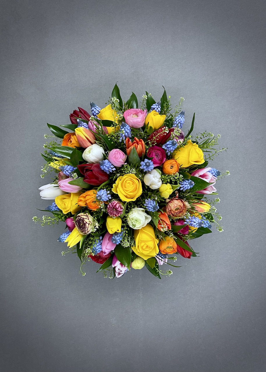 Our Florist bouquets use the finest A1 graded flowers and are expertly hand-tied and packed with care to keep your gift fresh on its journey. Some flowers will arrive in bud, meaning that the petals haven’t yet bloomed. This helps protect more delicate flower varieties during their gift journey and helps extend the vase life of the bouquet.